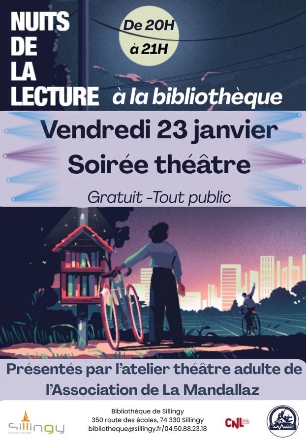 A l'occasion des Nuits de la lecture, en partenariat avec l'Association de la Mandallaz, la bibliothèque municipale de Sillingy vous propose d'assister à une représentations de théâtre, par le groupe adulte de l'atelier théâtre.