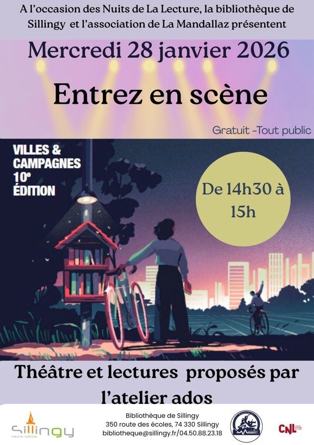 A l'occasion des Nuits de la lecture, en partenariat avec l'Association de la Mandallaz, la bibliothèque de Sillingy vous propose d'assister à une représentation de théâtre et lectures par le groupe ados de l'atelier théâtre.